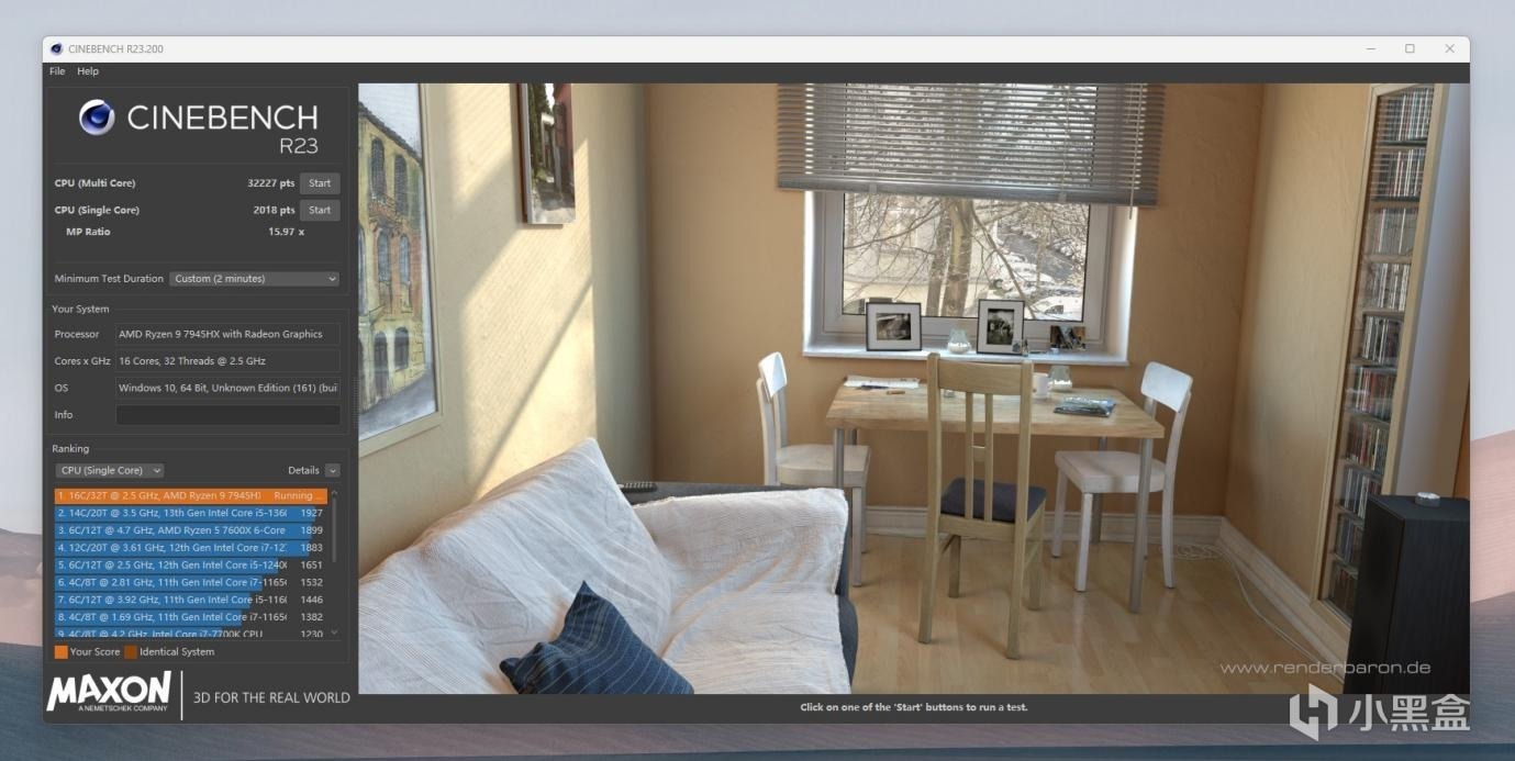 CINBENCH R23,多核32227,單核2018,單核提升,多核基本不變。