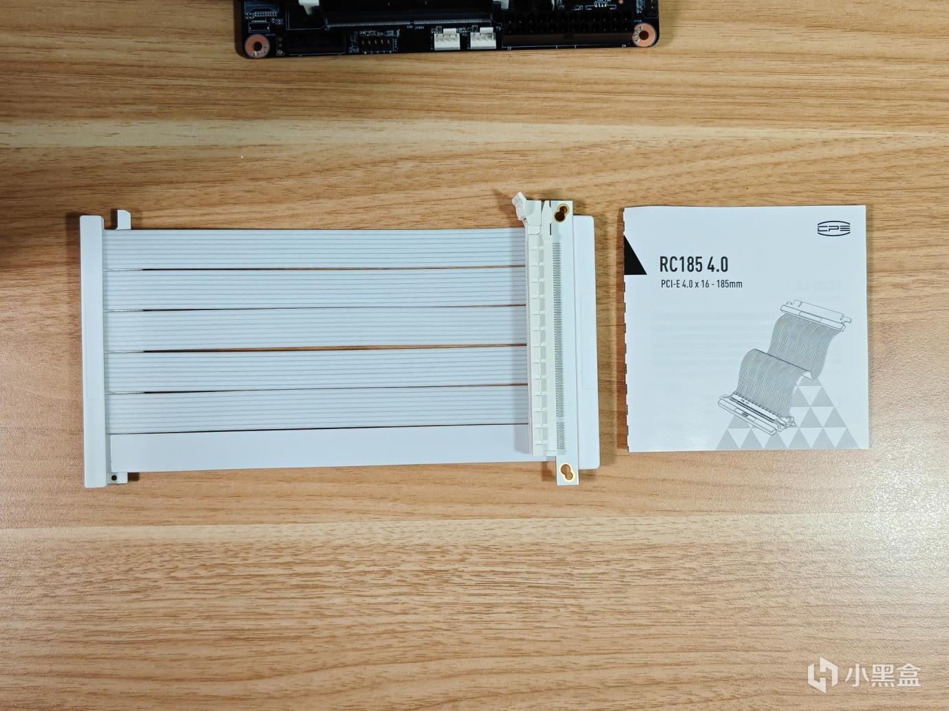 由於這個機箱的配置所以需要一根PCIE顯卡轉接線,超頻三的RC185 4.0,支持PCIe 4.0,185mm長度。如果用PCIe 3.0的轉接線,我之前實際測試過,只要不是4090和7900XTX,基本沒有損失。