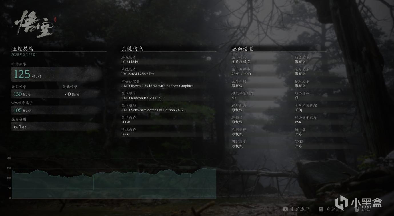 黑神話.悟空,2K分辨率,畫質影院級,幀速125幀/秒。