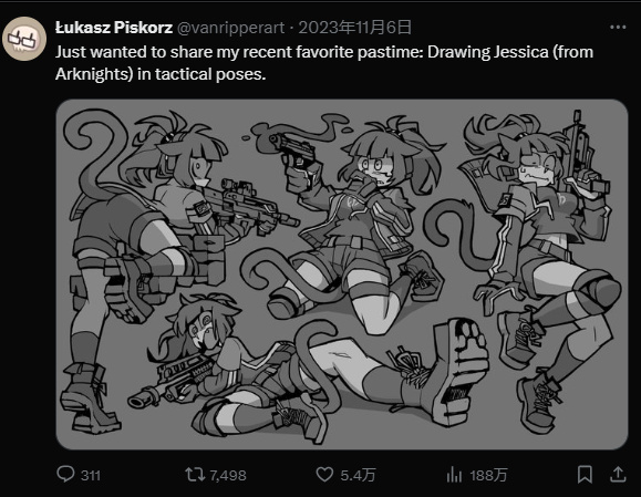 在他的主頁裏,你除了能看到配合遊戲更新的四格漫畫以外,還能看見來自各種不同領域的角色,從上古IP到當期熱門動畫再到國產二遊,
