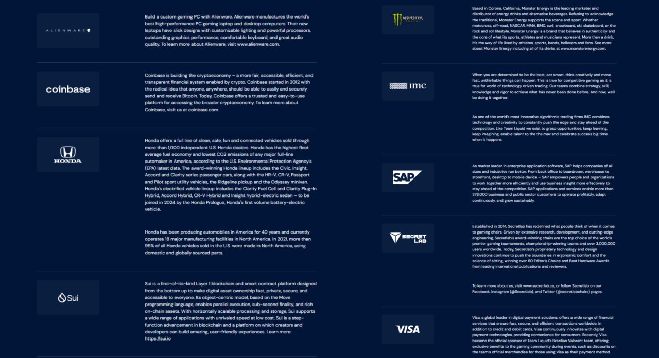 根據其官網顯示,目前的贊助商總共有8家和1家電競學院: