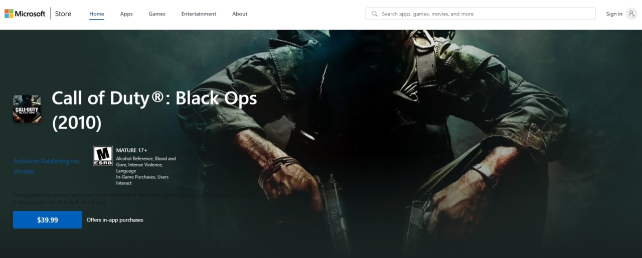 《使命召喚:黑色行動1》已登錄微軟商場,至此,除了主機獨佔的《紅一縱隊》和戰網獨佔的《黑色行動4》《現代戰爭2重製版》外,其他所有《使命召喚》系列正作已登錄微軟商場。