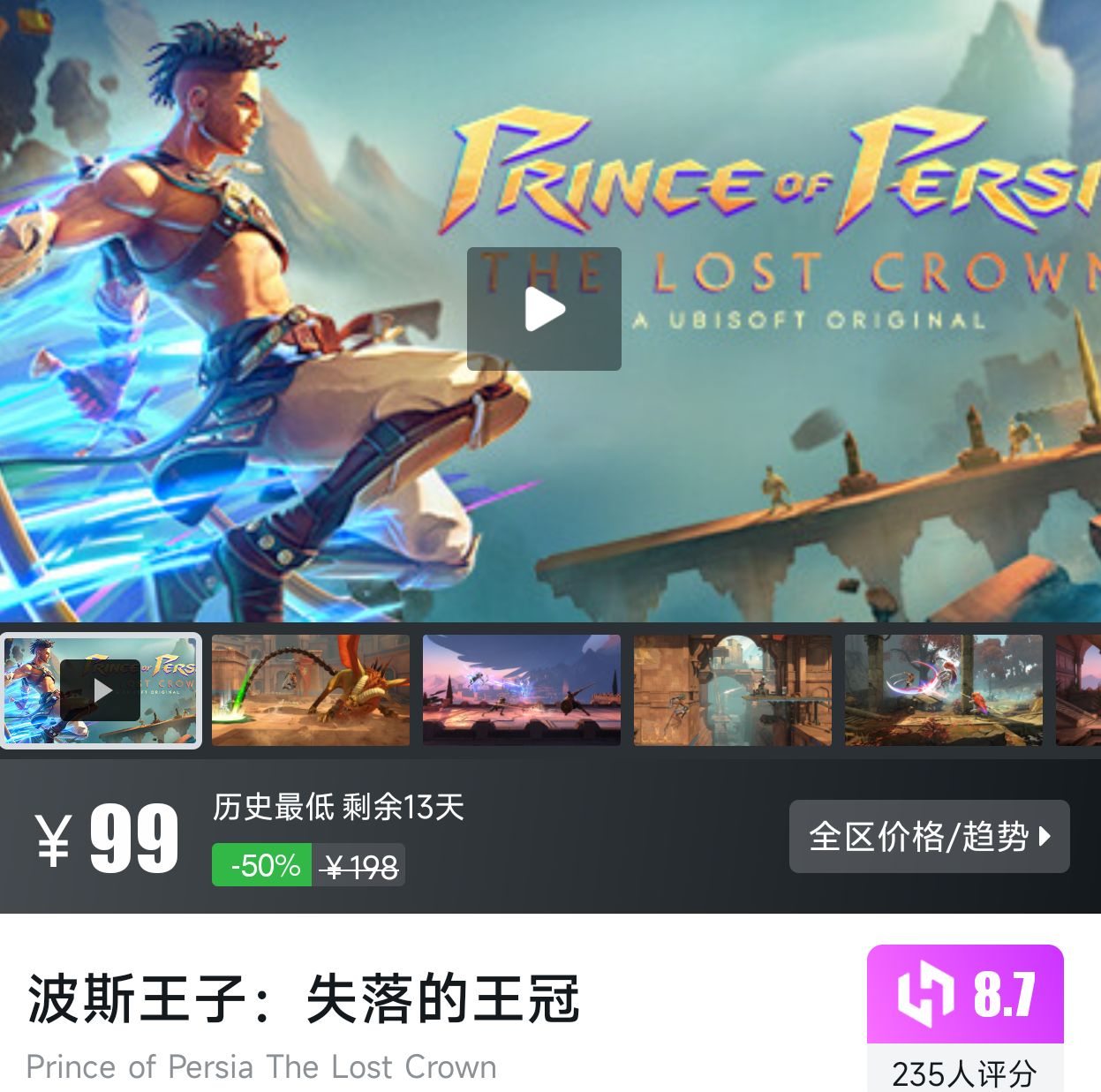 动作冒险游戏,历史最低折扣剩余13天,小黑盒评分8.7