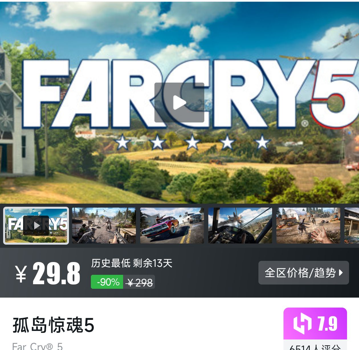 第一人称射击游戏,玩家在开放世界对抗邪教,历史最低折扣剩余13天,小黑盒评分7.9