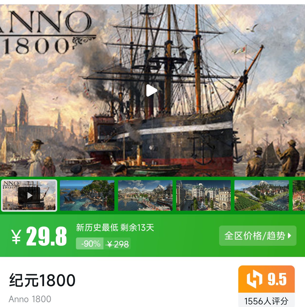 策略经营类游戏,背景设定在工业革命时期,新历史最低折扣剩余13天,小黑盒评分9.5