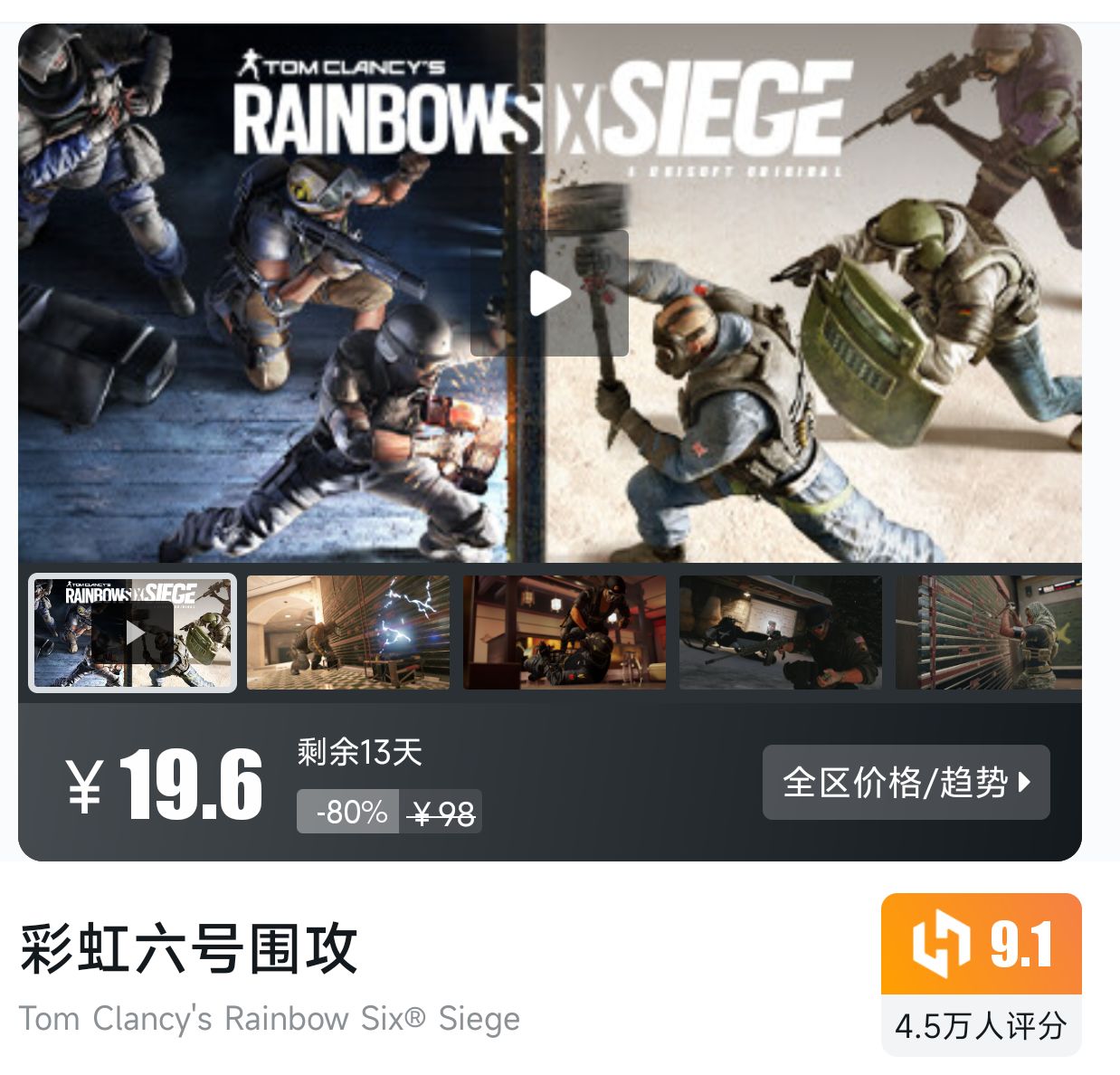 战术射击游戏,注重团队协作,折扣剩余13天,小黑盒评分9.1