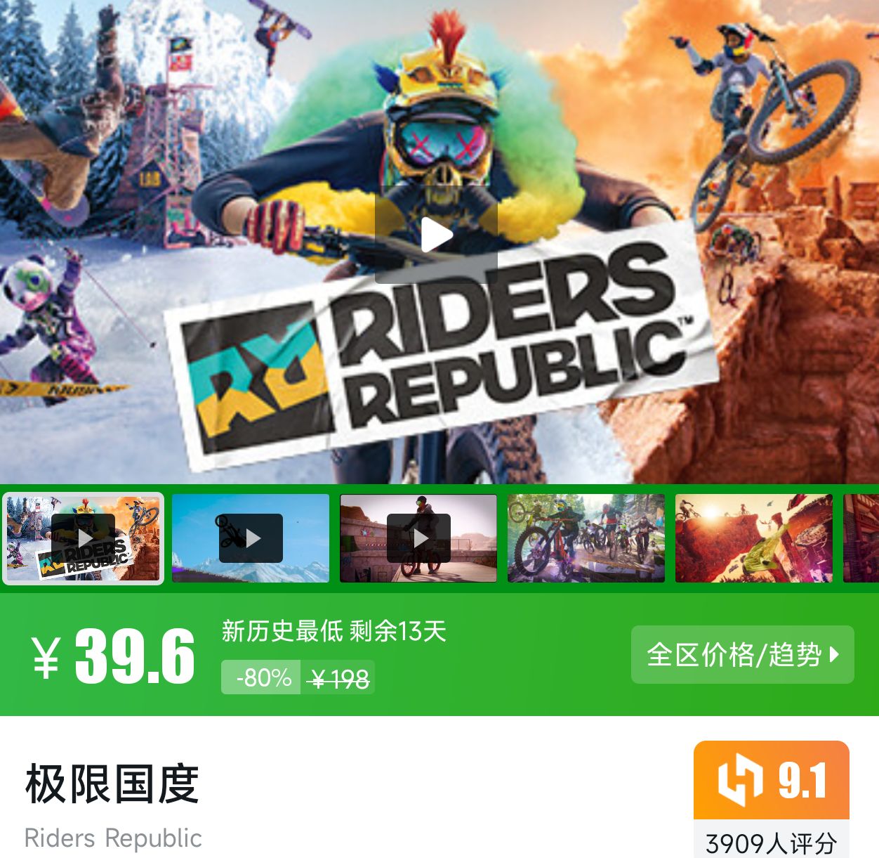 极限运动题材游戏,新历史最低折扣剩余13天,小黑盒评分9.1