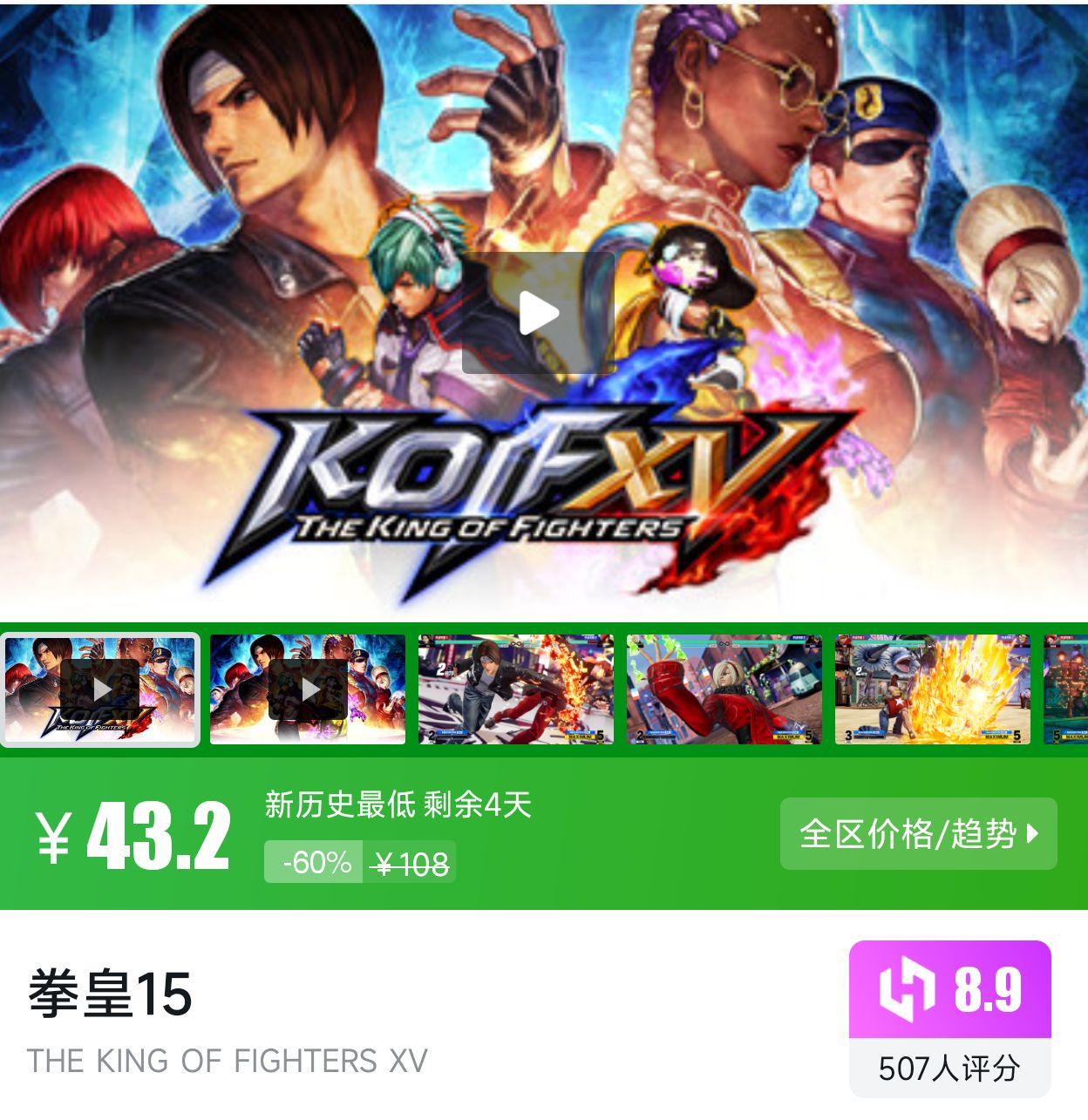 格斗游戏,新历史最低折扣剩余4天,小黑盒评分8.9