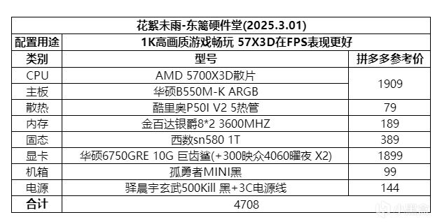 目前5700X3D價格比較高。3A遊戲爲主就5600+7700XT, FPS爲主還是考慮57X3D。