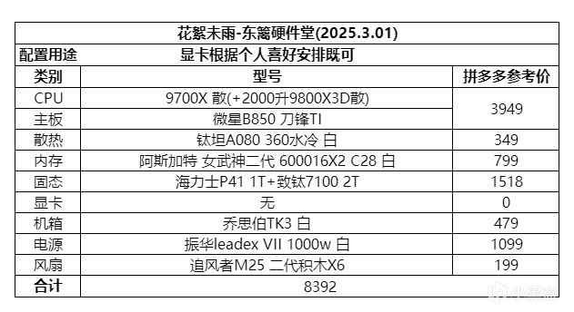 如果追求性價比,推薦AMD 9700X 或7500F配好點主板過渡。英特爾雖然價格低,但售後麻煩,需謹慎考慮。5700X3D漲價後不太划算,建議選擇7500F。