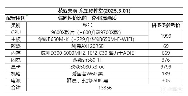 如果專業需求和多核需求大考慮直接上9950X,目前4000內性價比還是蠻高的
