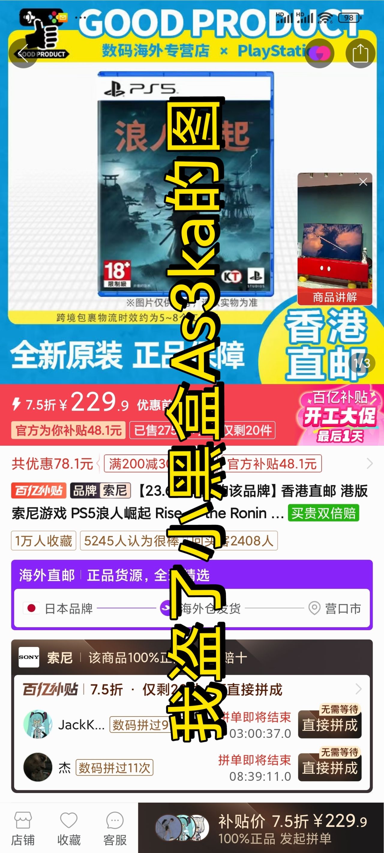 然後說一下浪人崛起這個遊戲,最近我個人建議是不降到對馬島那個級別不要入手,我也有充分理由懷疑忍組遊戲的降價潛力,忍組遊戲由於技術力不足跟遊戲機制設計理念過於獨特,作品很挑人,比fs社全家桶還挑人,一直走不出小衆愛好者這個圈子,雖然我對臥龍情有獨鍾,但是忍組遊戲註定目前不保值的。。。