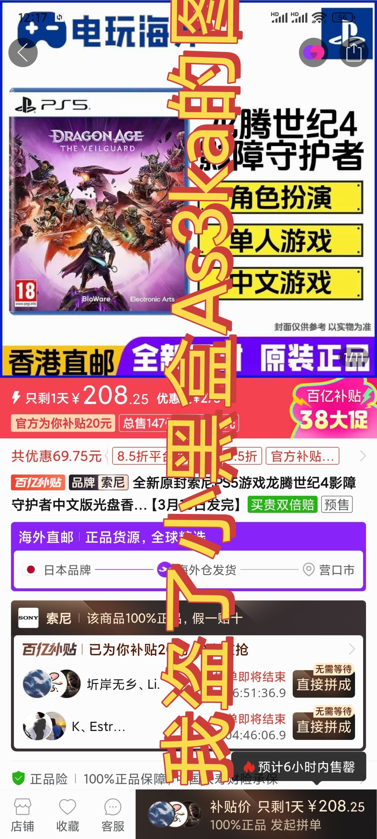 龍騰世紀4,300+價格沒維持一天直接229然後昨晚又降到208,主要遊戲屬實品控擔憂還進了psn,盲猜120水平。