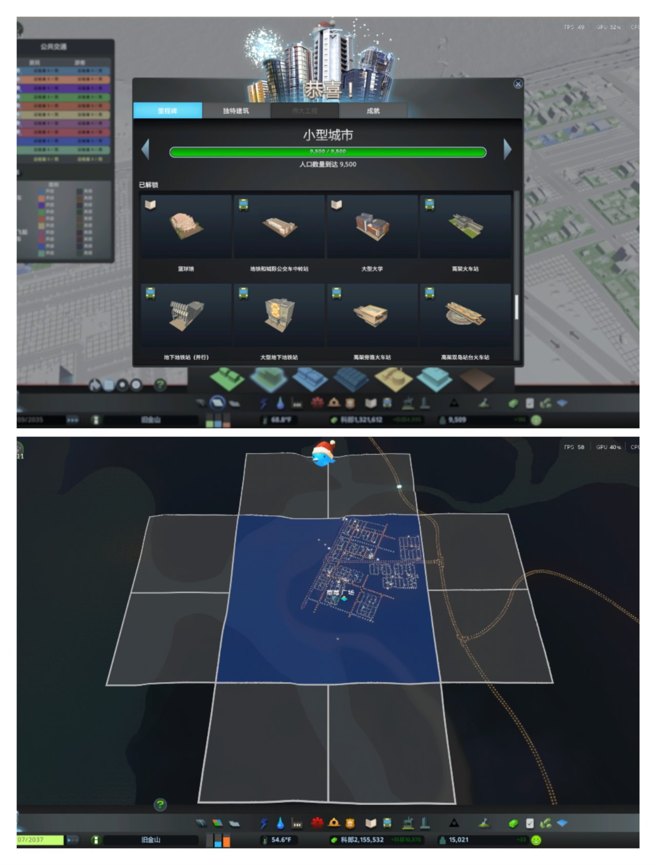 之後補住宅,補辦公,小學不夠補小學,人口來到9500,解鎖地鐵,並解鎖第三塊土地購買