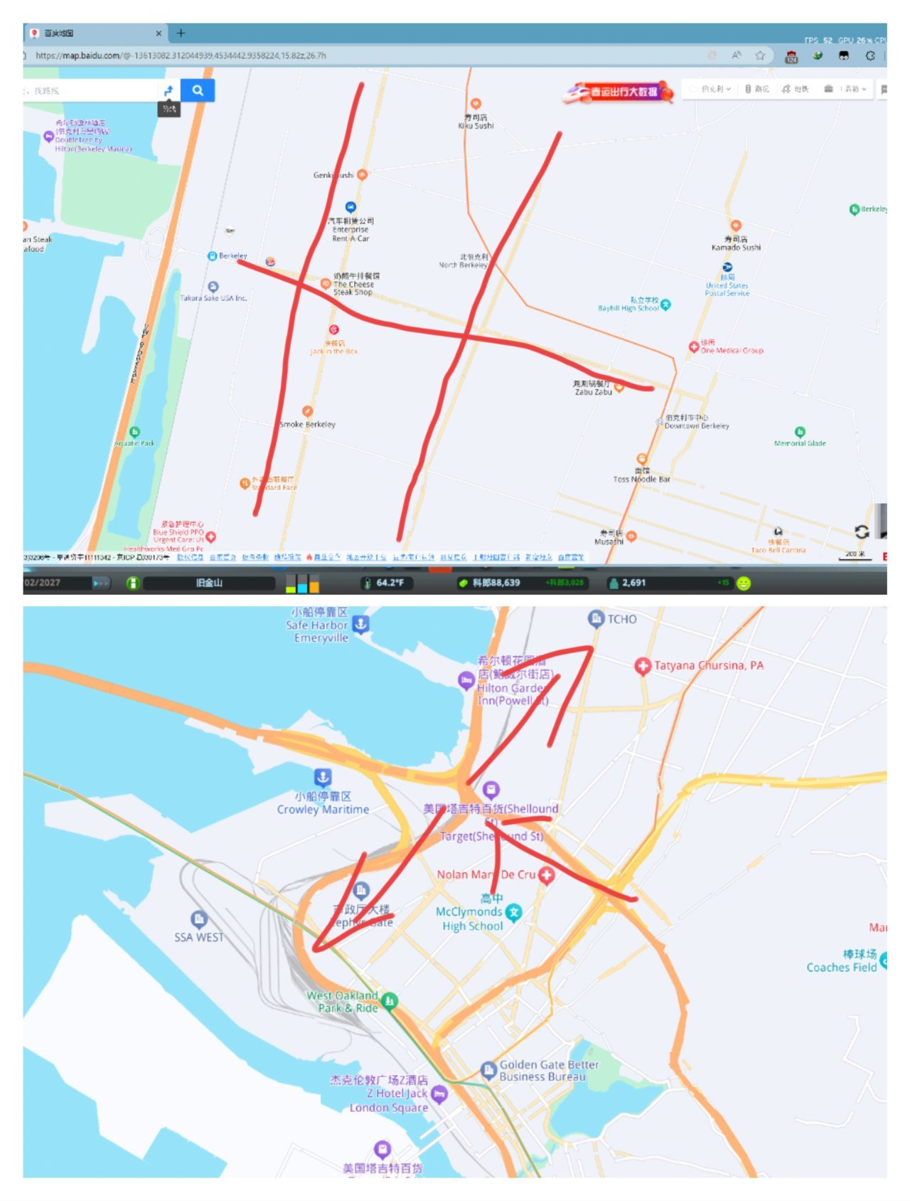 我們可以看見真實地圖上很粗的橙色線條,即爲高速公路,那麼我們可以藉此知道我們城市的高速公路大致規劃。