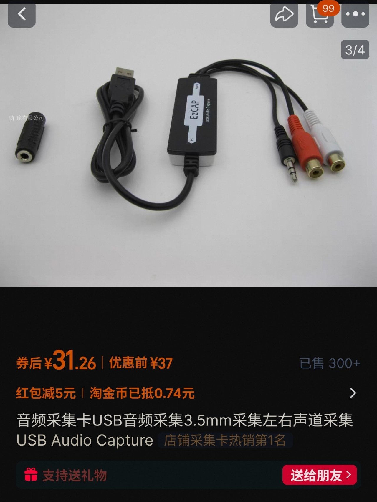 这个的作用就是usb端插入电脑的usb口,另一端的音频线接你其他设备的音频输出口,支持采集3.5和莲花头,由于是有线连接,所以它