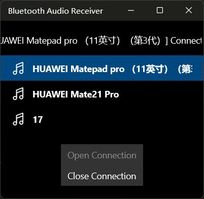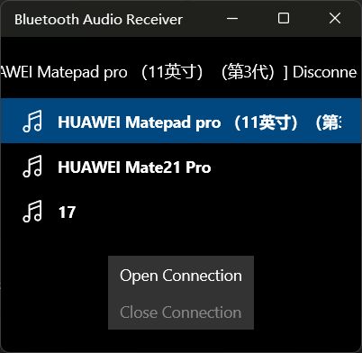 选择你要播放音频的设备,然后点击open Conection,这里连接我的平板为例子