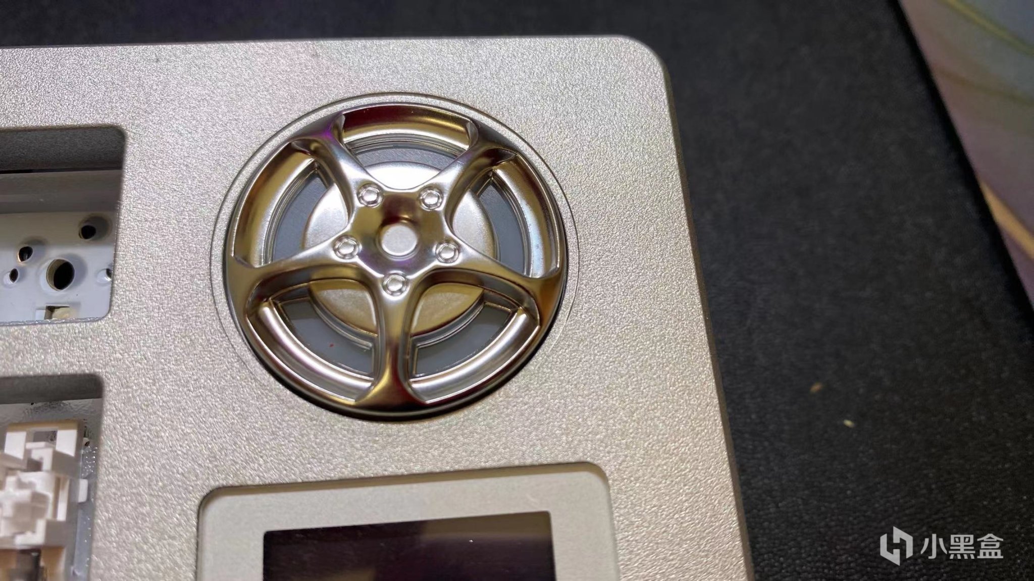 首先来看右上角这个音量旋钮,这个旋钮设计成了汽车的轮毂,有的人说难看,但是我对我来说我很喜欢,但是让我不喜欢的一点就是他是个塑料的。