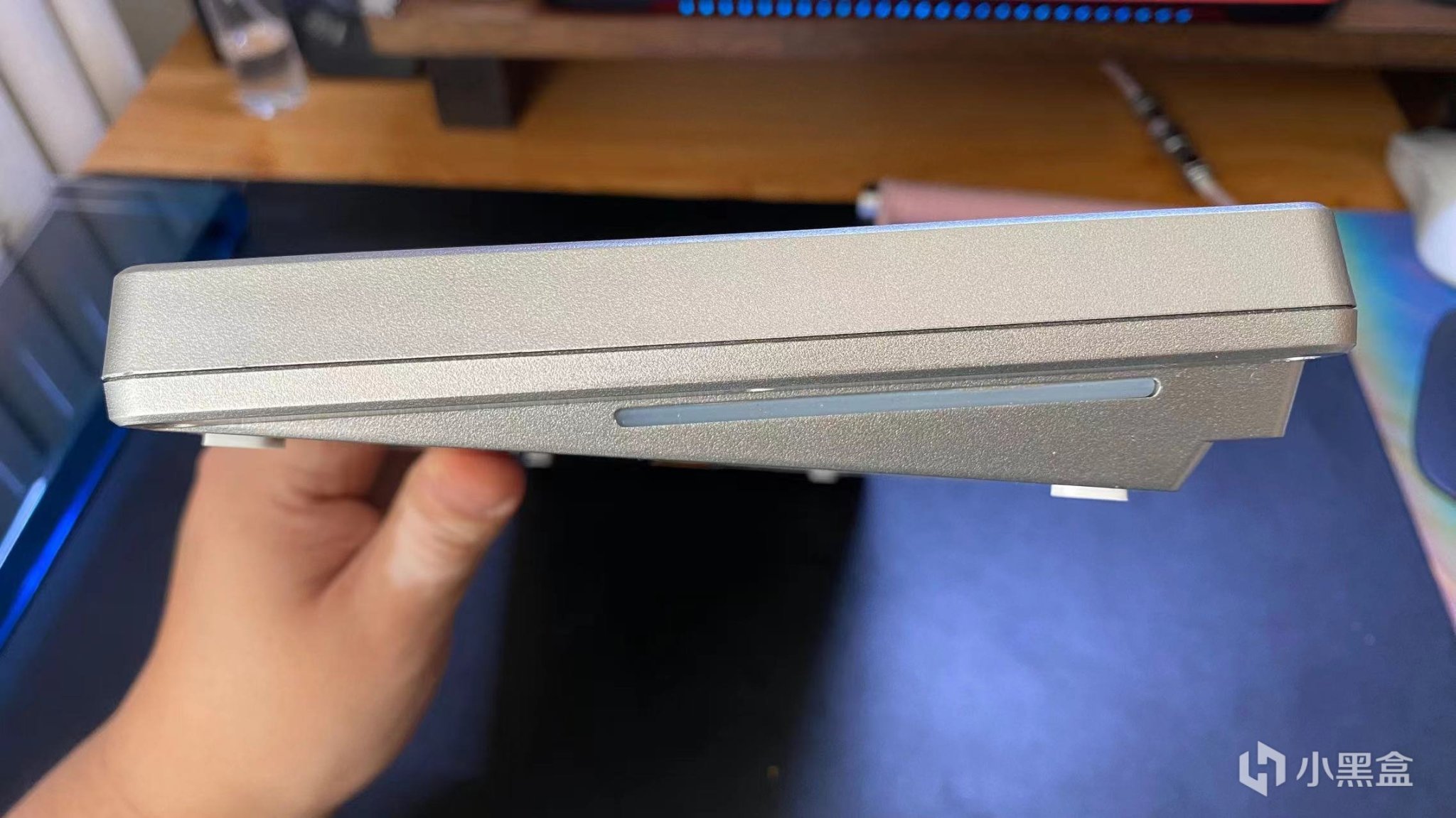 键盘的充电口位于键盘的右侧,之后还有一个开关,但是由于我这个是一个单模的,所以这个开关应该是控制键盘的fn锁。如果以后出三模的话那这个就是三模的开关。
