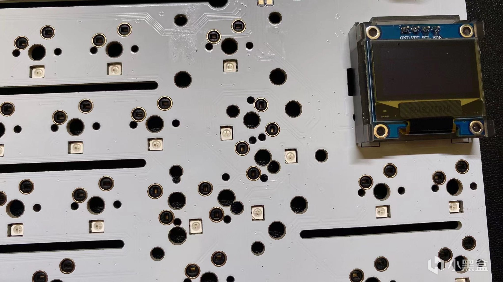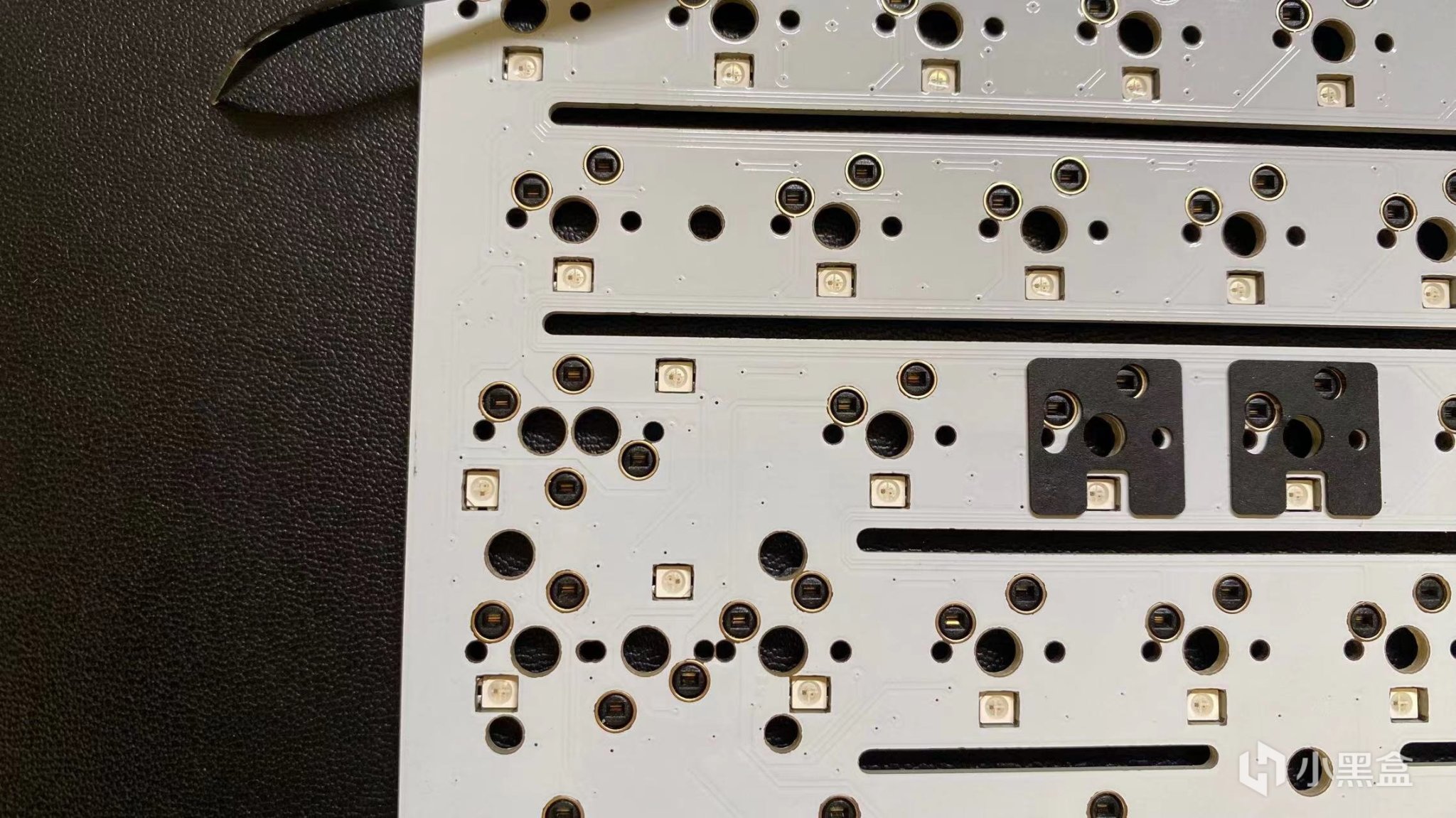 pcb进行了开槽的处理,使得pcb更加的软,这里我很喜欢,之后采用的还是一个下灯位,下灯位的pcb可以搭配现在你们特别喜欢的一个侧刻的键帽使用,这里还是可以的