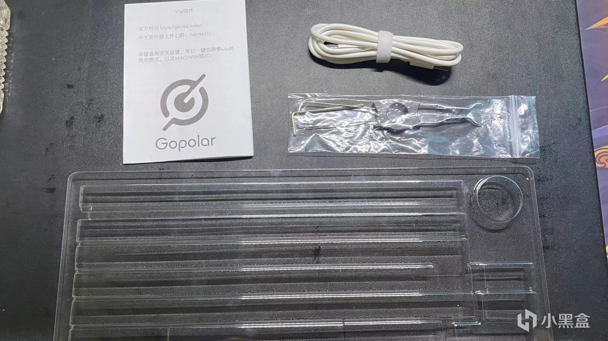 打开外包装取出所有的物品就可以看见这个键盘套件以及所有的物品: