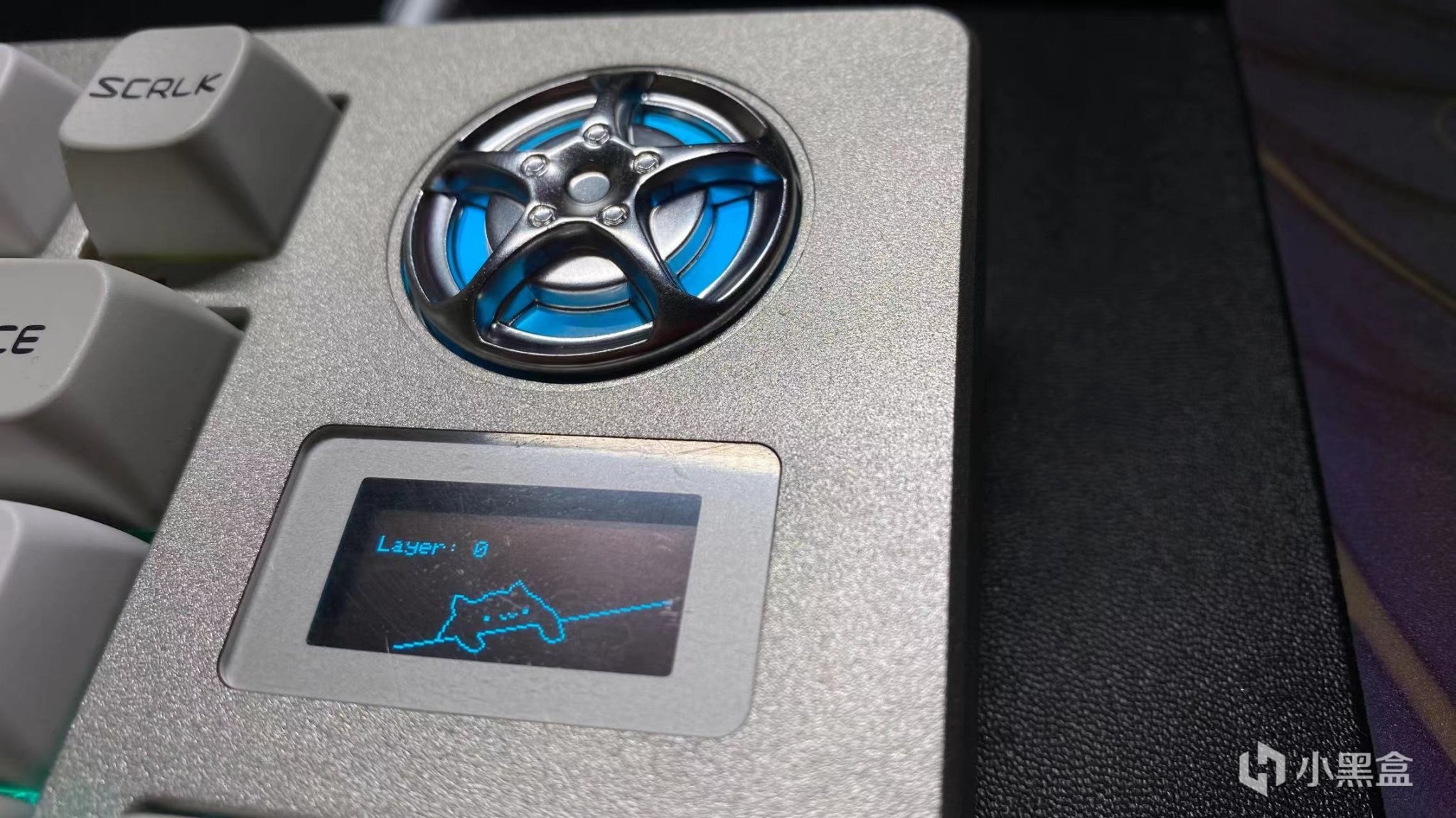 下方紧接着就是一个小屏幕,这个小屏幕正常的时候显示一只猫猫,在你敲打键盘的时候猫猫也会进行敲打,但是刷新说实在的有点低了。