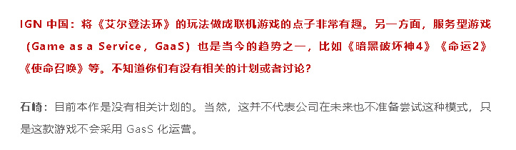 所以虽然备受玩家期待,但《黑夜君临》没有宫崎英高参与,没有乔治·马丁参与,甚至算不上《艾尔登法环》的续作——只能算外传。宫崎英高只是发起了这个项目,给了总监石崎淳也「绿灯」许可,就投身去做其他项目了。