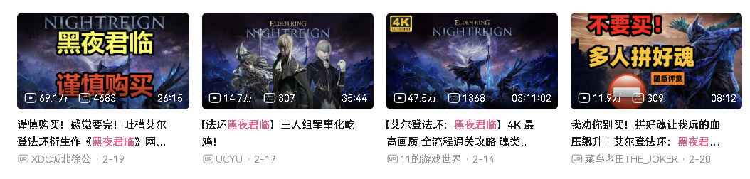 除《宣誓》之外,老头环IP的新作《艾尔登法环:黑夜君临》也开启了一轮网测。结果同样尴尬:除了服务器问题导致的大量吐槽之外,你能看到网上最大的一种声音,是劝你谨慎购买、入坑,因为它同样显得平庸,玩起来还时而让人高血压。