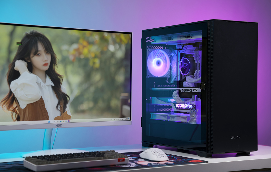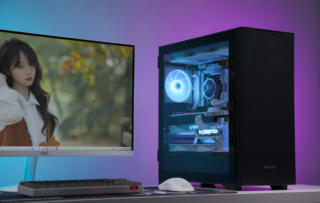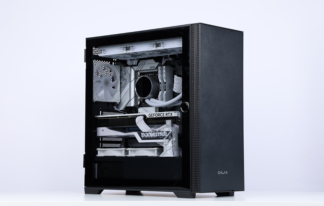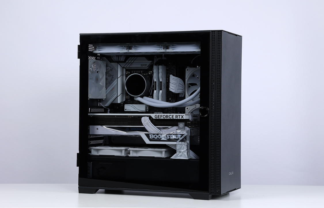 机箱方面,今天的主角是影驰艾尔登黑色机箱。主流的钢化玻璃侧透设计,磁吸式侧开面板也大大降低了装机和日常维护的难度;机箱不仅能很好的兼容RTX40系显卡,同样也最大可支持360冷排的安装;