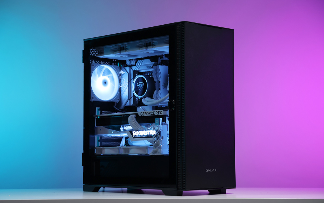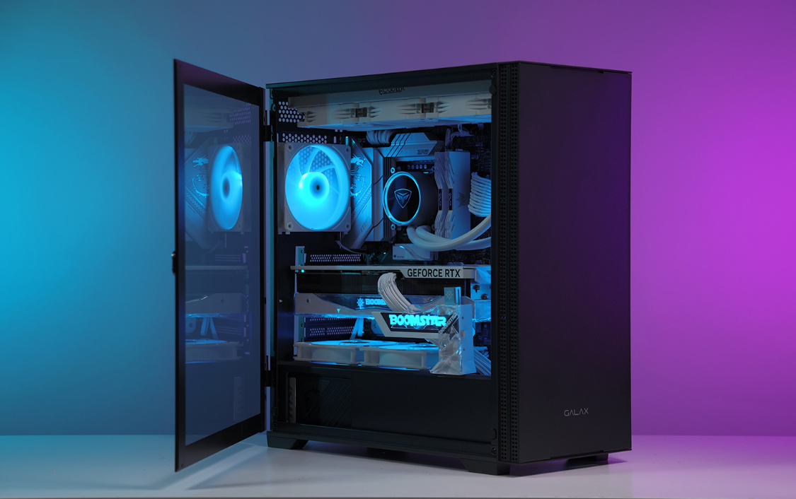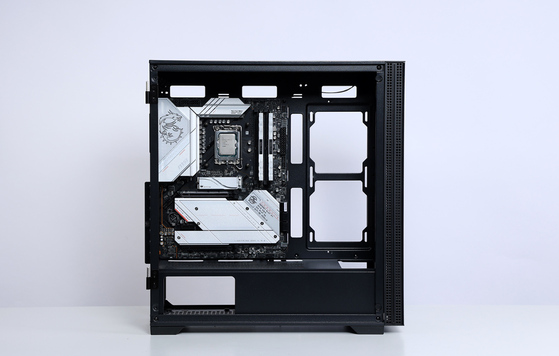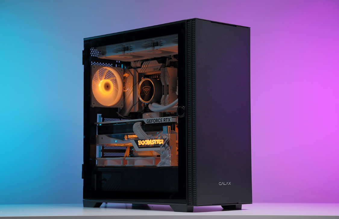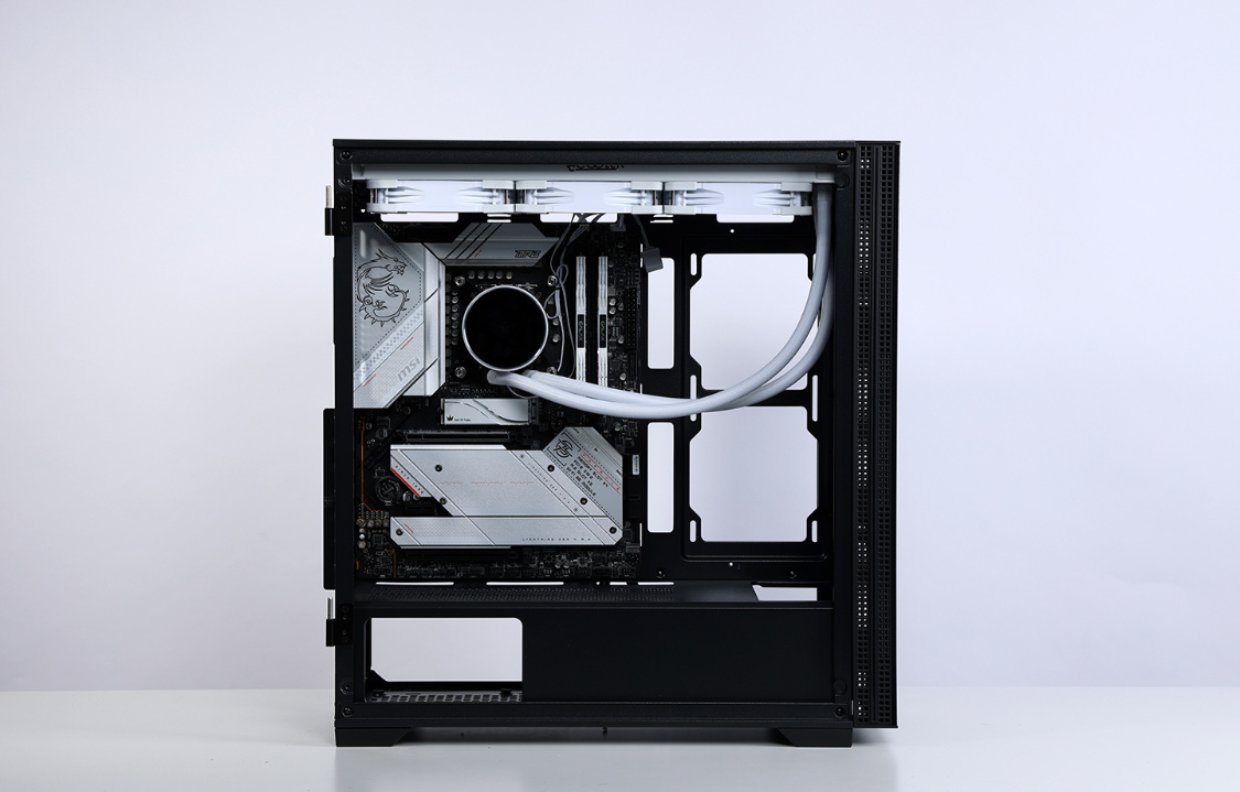机箱方面,今天的主角是影驰艾尔登黑色机箱。主流的钢化玻璃侧透设计,磁吸式侧开面板也大大降低了装机和日常维护的难度;机箱不仅能很好的兼容RTX40系显卡,同样也最大可支持360冷排的安装;