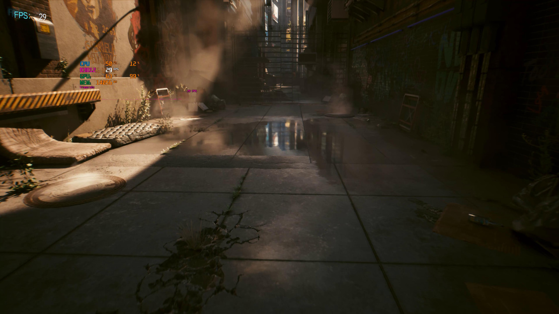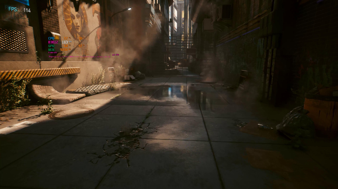 《赛博朋克 2077》基准测试,画质光追均为超级,4K分辨率下,关闭DLSS时,游戏的实际帧率约为30FPS左右。开启超级性能模式下的DLSS 2.0后,游戏实际帧率约为115FPS左右。继续开启DLSS 3.0后,游戏实际帧率约为150FPS左右;