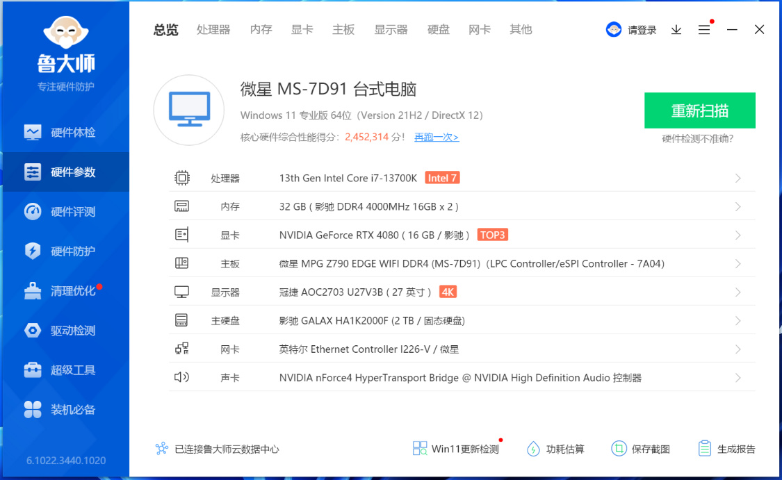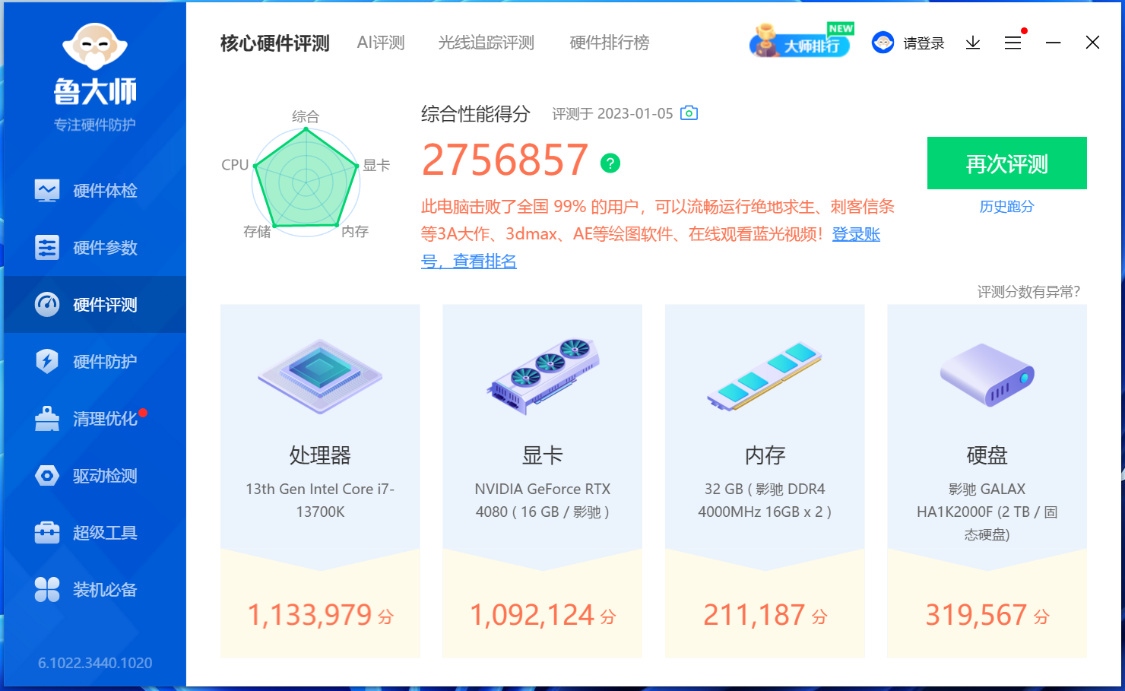内存方面,选择的是HOF Classic DDR4-4000 16G*2,高频率、大容量,还能稳G1模式,实际性能完全不输大部分DDR5内存;