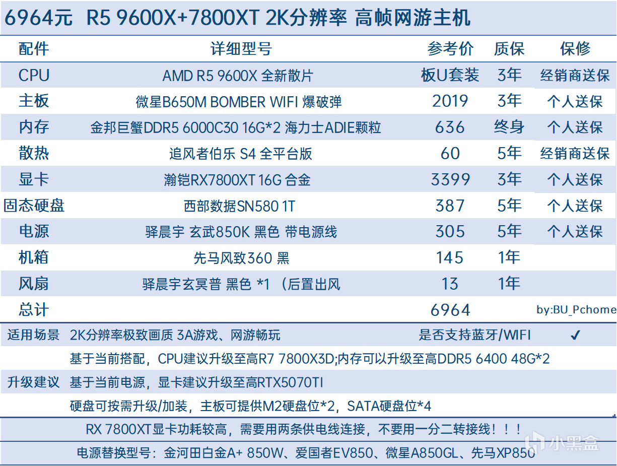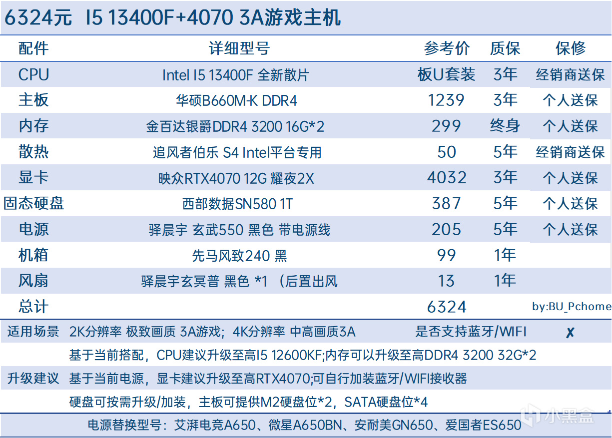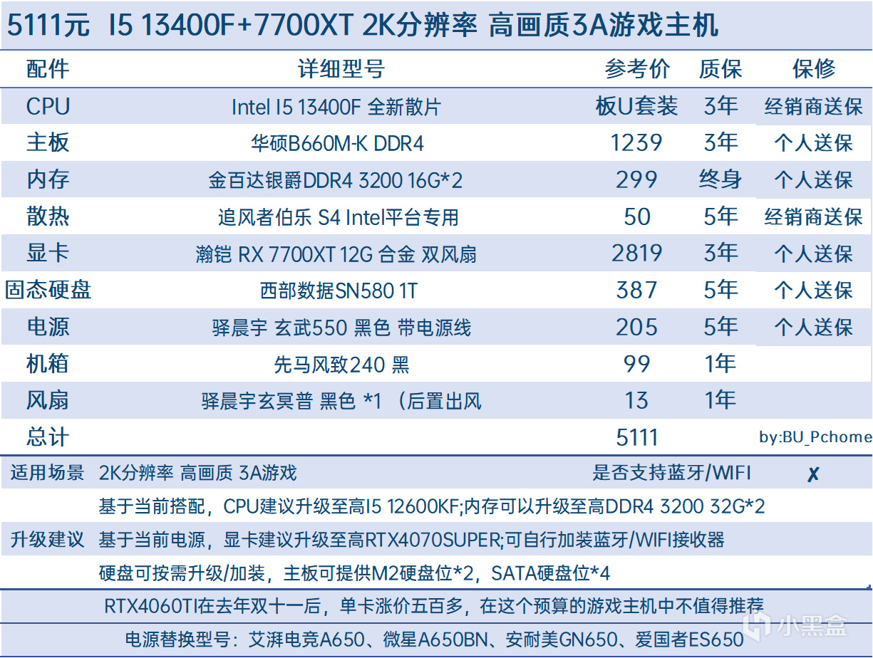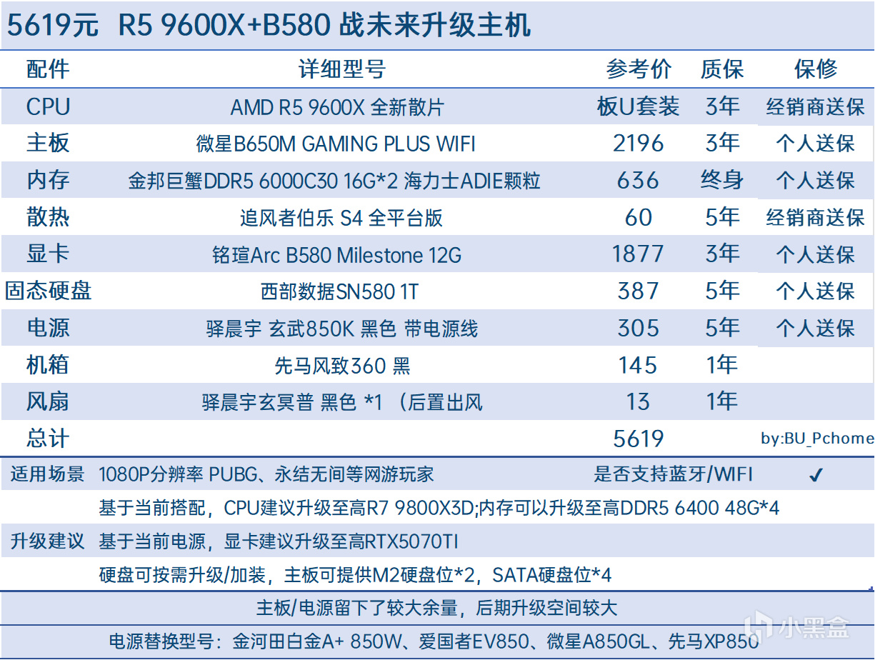 關於電源:如果覺得我給的電源檔次偏低,自己可以加錢換其他型號,更換顯卡時請務必關注電源是否夠用/機箱兼容性;