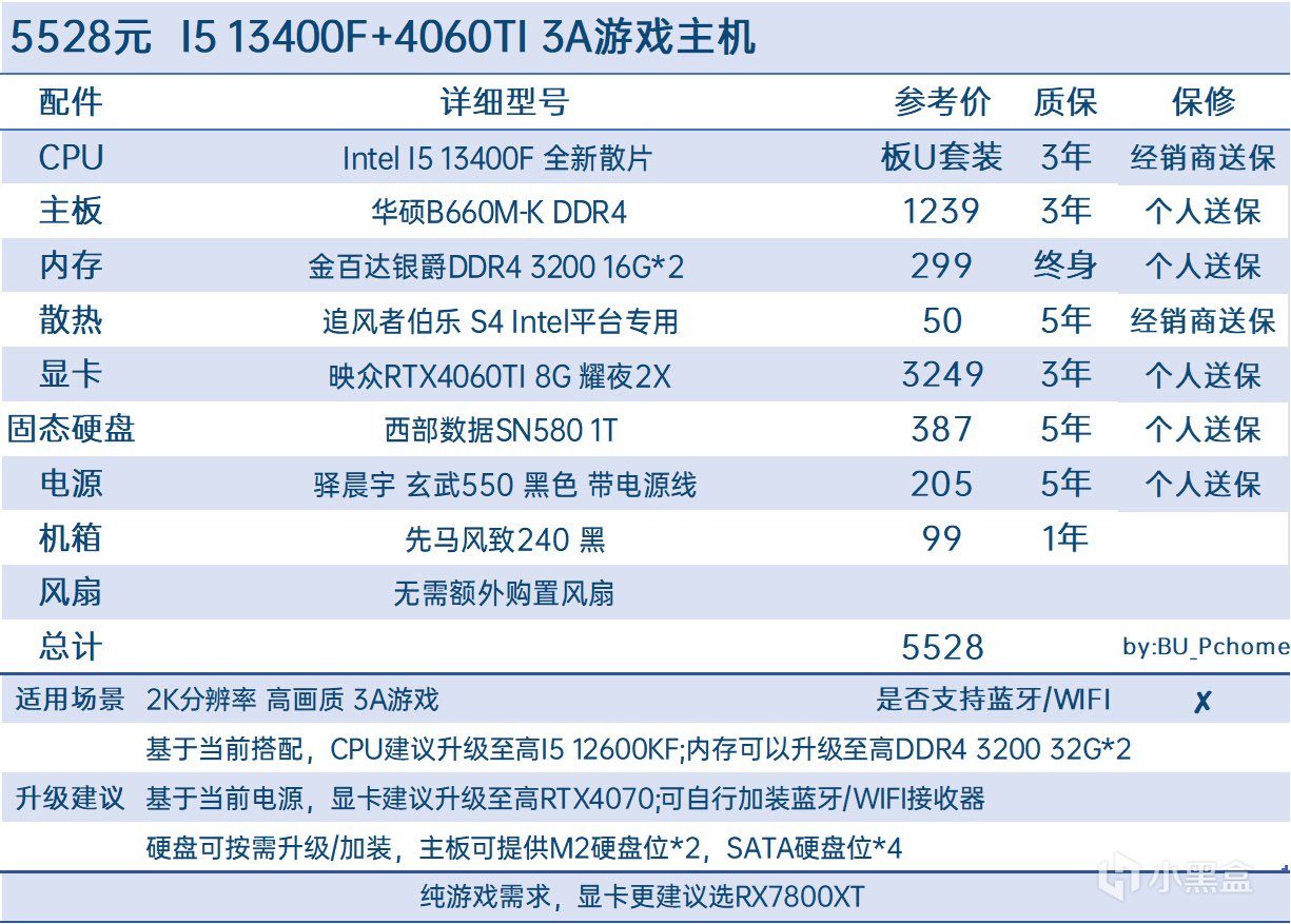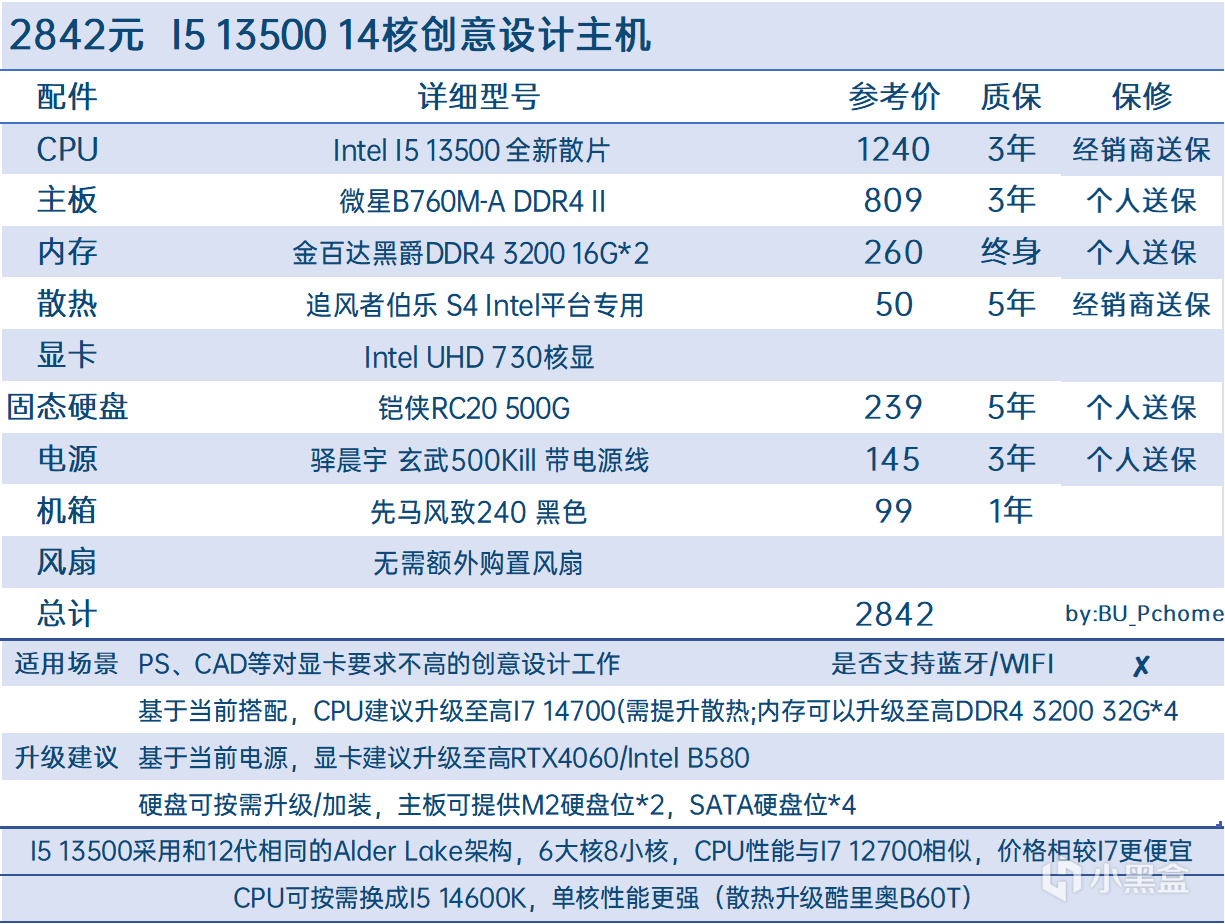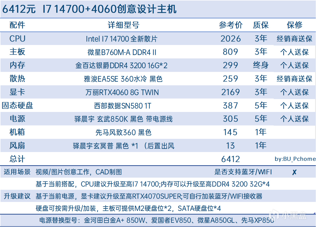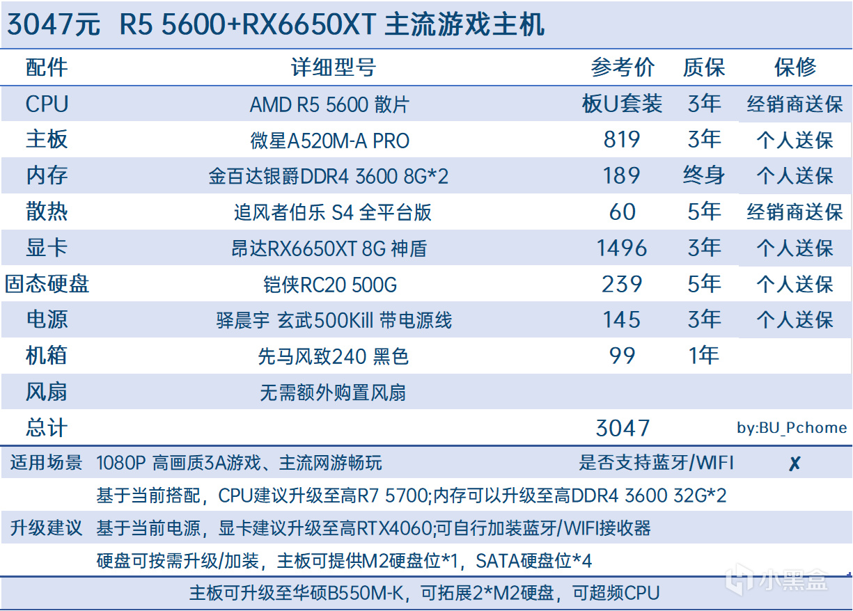 文中給的配置單可以看作是基本框架,對硬件有自己的理解都可以自行更換想要的配件。圖裏的配件基本都是在滿足性能要求下的性價比選擇;