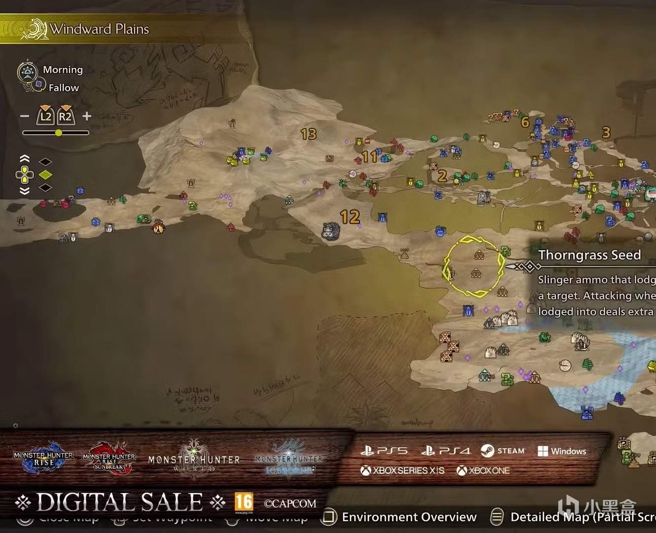 像烹饪这种能让你为接下来的狩猎做好准备的系统依然存在,但现在食物的增益效果会在食用后持续一段时间,而且在倒计时结束前不会消失 —— 甚至在营地中都不会减少时间,这让以前繁琐重复的流程变得流畅了很多,同时又保留了烹饪系统为狩猎增加的策略深度。 像这样的便捷调整在《怪物猎人:荒野》中比比皆是,最终带来的成果就是大幅减少了以往作品中的每次战斗间隙,玩家需要反复进行准备和调整的繁琐感, 现在你只需打开地图查看怪物信息,骑上坐骑便可立刻展开狩猎。
