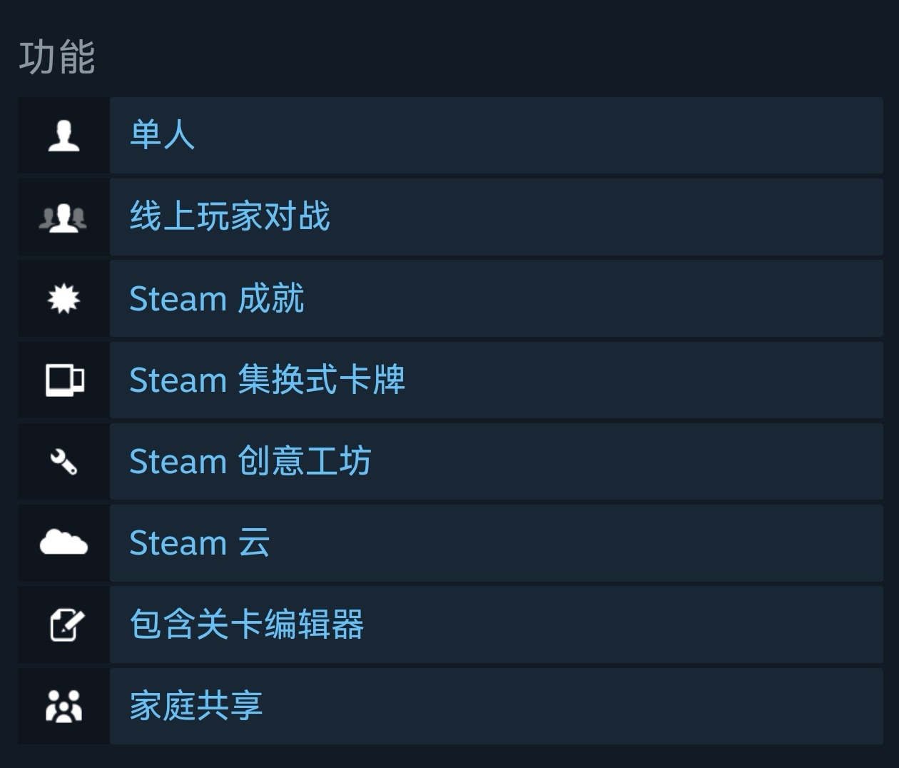 遊戲支持創意工坊以及線上玩家對戰,還支持家庭共享,可以說這些大大提高了遊戲的可玩性。