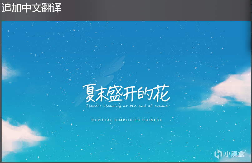 之前买过《夏末盛开的花》但因为没有中文还没玩的同学,现在可以去玩啦!目前游戏已经支持简体中文了。
