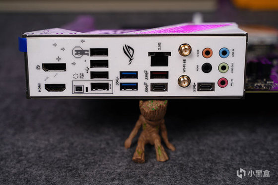 对应 8+4PIN CPU 供电接口,满足使用需求,搭配银白色的金属散热模块,给到 MOS 散热,I/O 模块上头带有灯板设计,内败家眼带有 RGB 灯光装饰点缀。