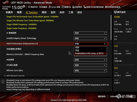 点亮展示下,值得一提的就是 ROG STRIX B760-G GAMING WIFI D4 小吹雪 搭载了华硕最新的 APE3.0(ASUS Performance Enhancement 3.0)功能,BIOS 中默认开启该功能,能够解锁处理器 PL1/PL2 功耗,提供更强的处理器性能释放,对于非 K 处理器来说意义还是比较大的,具体后面装机再做相关的评测。