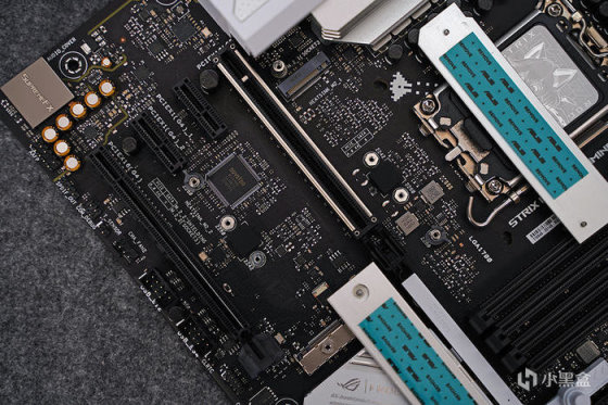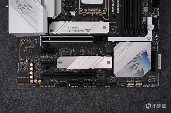 PCIe 扩展方面,两条 ×16 卡槽,两条 ×4 卡槽,×16 带金属加固为直连 CPU 的 PCIe 5.0 ×16,另一条由芯片组提供 PCIe 4.0 ×4,两条 ×4 卡槽亦是;两个 PCIe 4.0 ×4 M.2 NVMe 接口,均覆盖有散热马甲,靠近 CPU 贞操 M.2_1 直连 CPU ,支持 2242/2260/2280 ,另外一个 M.2_2 则芯片组给到,支持 2242/2260/2280 ,向下支持 SATA 模式。
