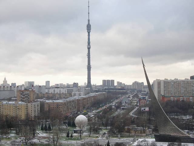 莫斯科宇航博物馆—莫斯科电视塔(左)和宇宙征服者纪念碑(右)
