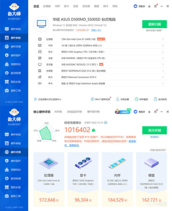 首先看看魯大師,具體的配置信息,給到的綜合性能得分爲 1016402。