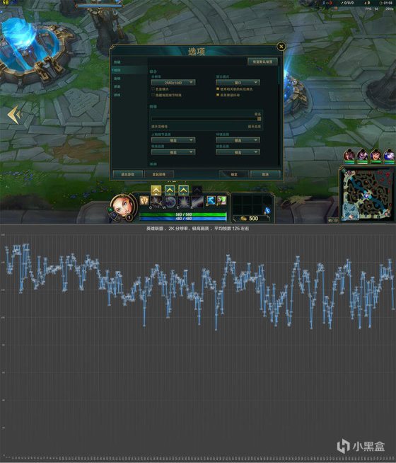 CPU 自帶 730 核顯,入門遊戲也能喫得開 ,LOL 極高畫質 ,分辨率調整爲2550×1440(2K分辨率),平均幀數能到 125 FPS 左右,全程沒有任何的卡頓。