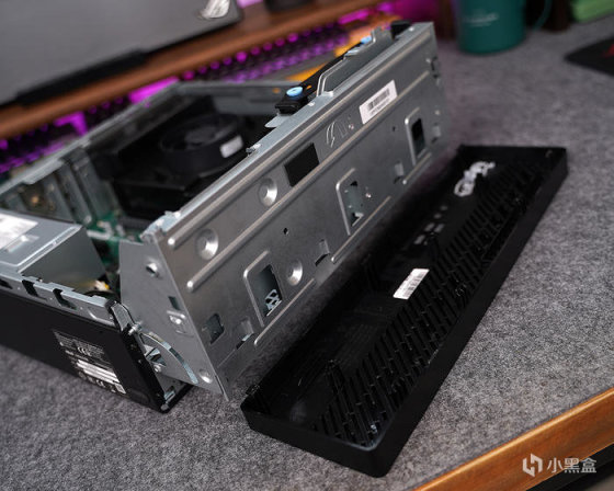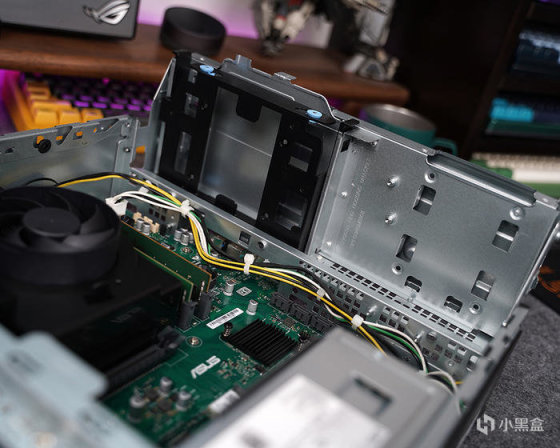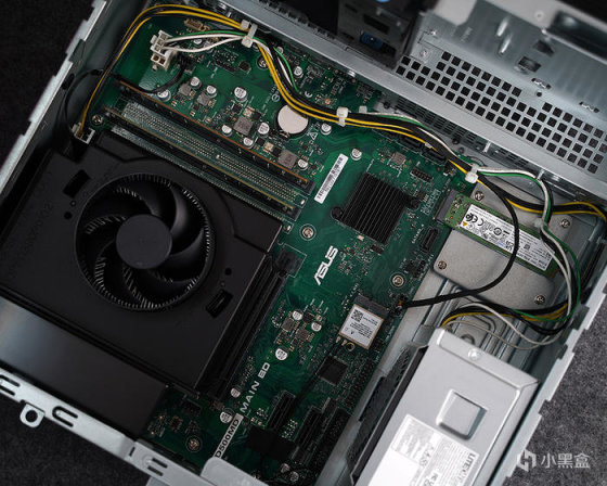 B660 芯片組的主板,非標準尺寸規格,目測與常規的 MATX 主板差不多大小吧,下壓式散熱器,外套了層黑色的導風罩,素質還不錯,對應裏頭的 I5 12400,不存在任何的散熱壓力,肯定優於 INTEL 零售款的原裝散熱風扇,靜音表現也還好。