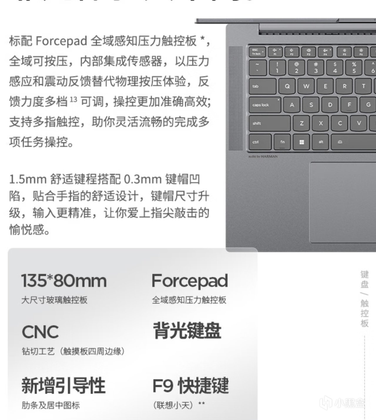 玻璃材質觸控板(高配版支持壓感),鍵盤字符居中+盲打優化,手感媲美ThinkPad。