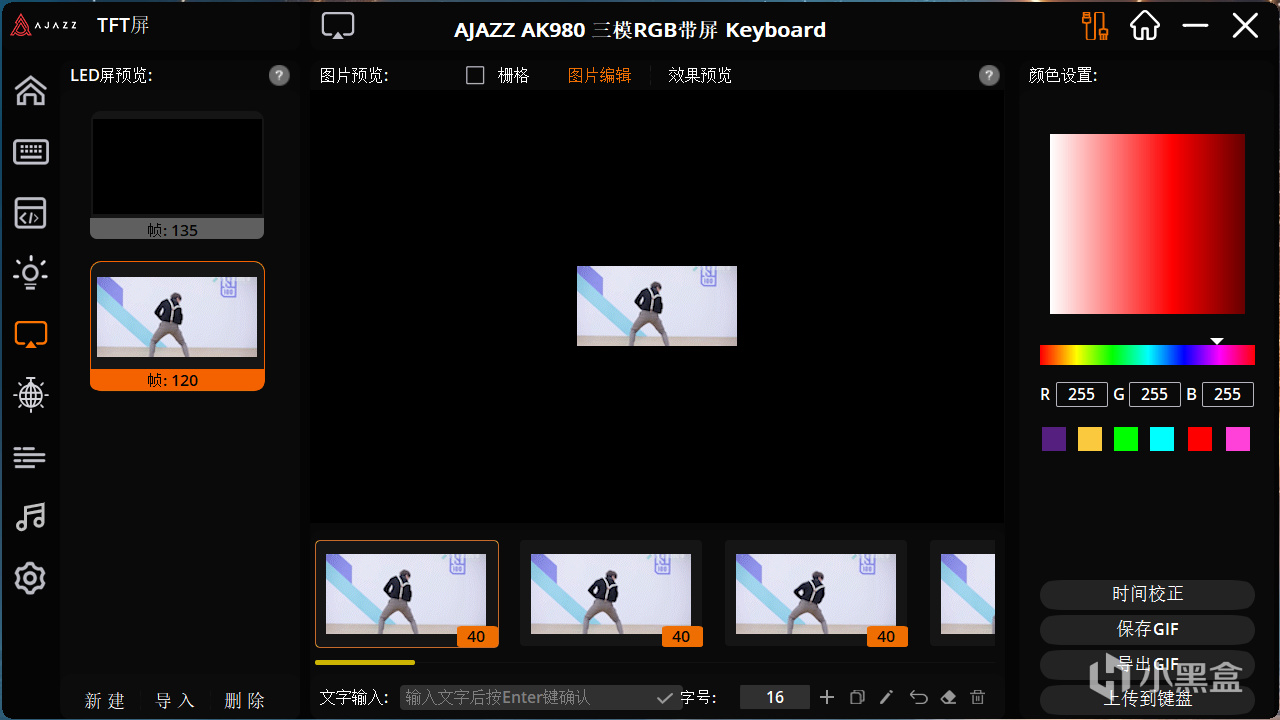 4.打开驱动,可以看到左侧第五个图标,进去看下面第二个导入,选择你准备好的GIF文件后面点击最右下的上传的到键盘即可