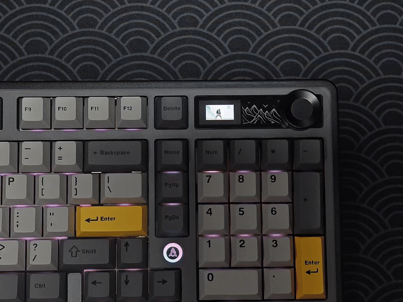 这是这把键盘上最大的卖点了,1.14寸的彩屏,可直观的看到: