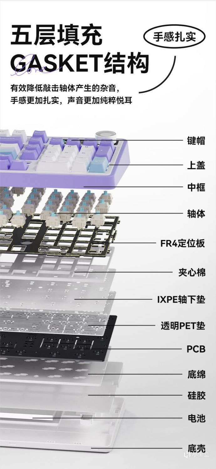 这把键盘外壳整体由ABS注塑组成,,键盘结构为gasket