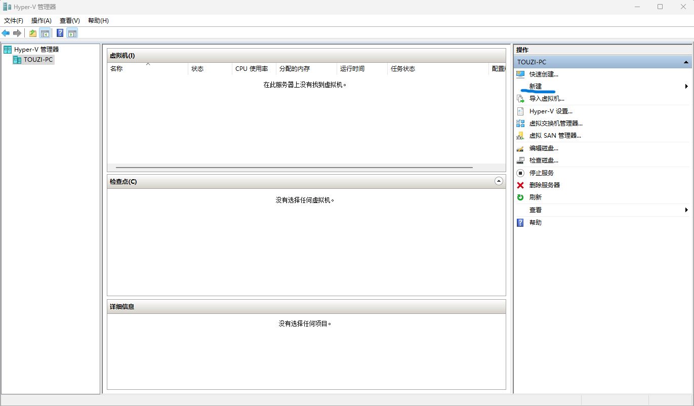 開始菜單搜索Hyper-V管理器並打開。