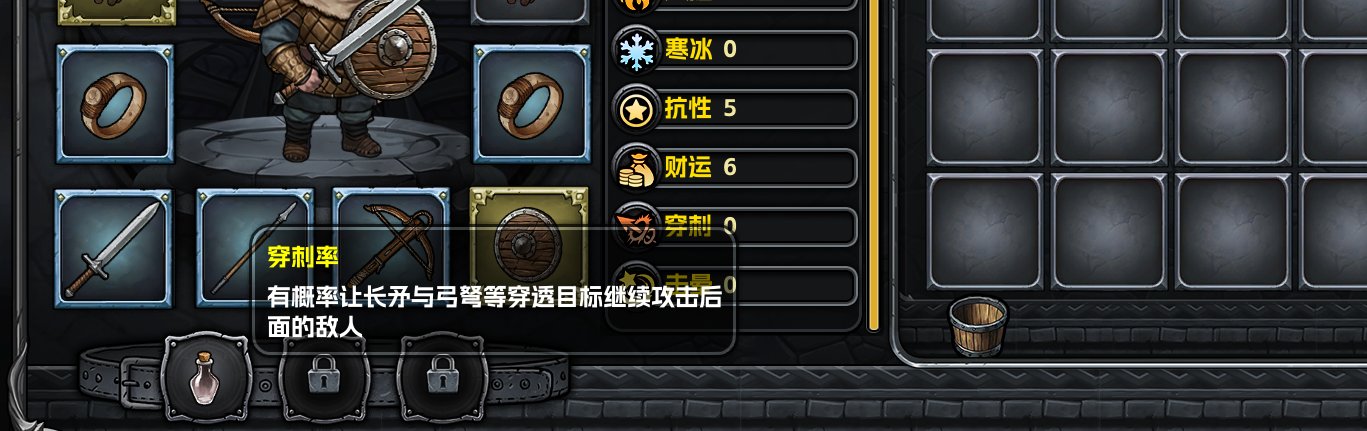 至于装备附带的属性,都有各自的用途。例如穿刺,有概率让长矛或者弓弩等穿透敌人。某类武器的熟练度越高,攻击取最大值的概率就越高。